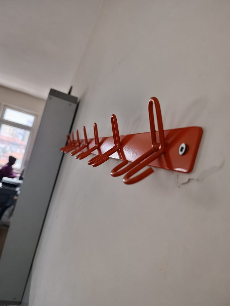 DUVAR ASKILARIMIZ 3 MM SAC LEVHA ÜZERİNE 5 MM LİK YAY ÇELİĞİ KULLANILARAK İMAL EDİLMEKTEDİR. OKULLARIMIZDA KULLANILAN ASKILARIN NEREDEYSE TAMAMI DÖKÜM MALZEMEDEN YAPILMIŞTIR. BU NEDENLE SIK SIK KIRILIR. YAY ÇELİĞİNİ BÜKMEK VE KIRMAK MÜMKÜN DEĞİLDİR. KULLANILAN SAC  LEVHA İSTER DOĞRUDAN DUVARA ASILIR İSTENİRSE ALTINA AHŞAP BİR YÜZEY KONUR VE ONUN ÜZERİNE VİDALANARAK MONTE EDİLİR. GÖRSEL OLARAK NASIL GÖRMEK İSTENİYORSA UYGULAMA O ŞEKİLDE YAPILIR.
